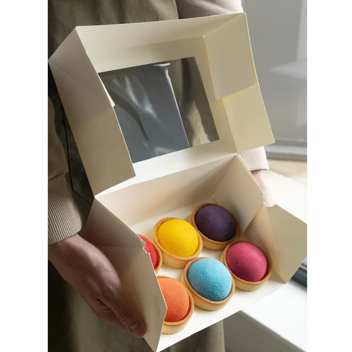 Velegnet til alt fra boller og tarteletter til petit fours og små kager. Læg et ark i bunden af æsken, og sørg for at dit bagværk står stabilt, så dekorationer, glasur og toppings bevarer deres flotte udseende frem til servering.