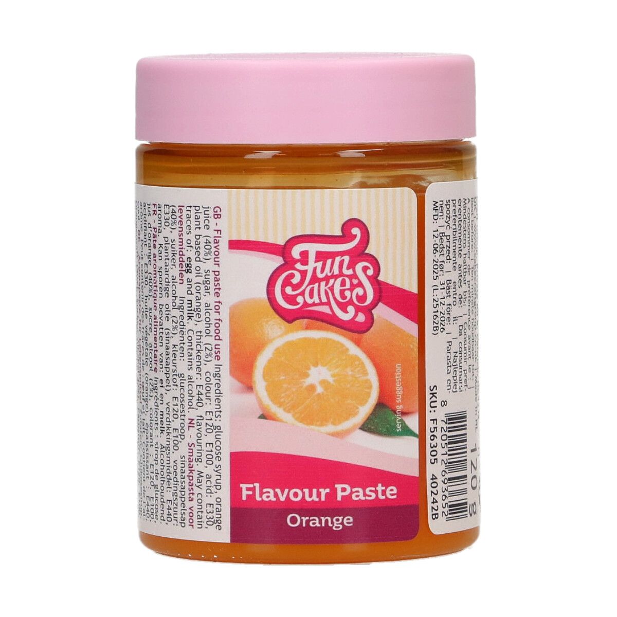 Orange Smagspasta fra Funcakes er perfekt til f.eks. dine fyldte chokolader – ideel til at give smag til dine fromager, mousser, is og smørcreme. Du kan også bruge Smagspasta i din kagedej, for en ekstra skøn smag. Hvis man bager med høje temperaturer over (200°C) tilføj da lidt ekstra pasta, da varmen svækker smagens styrke. Produktet kan også benyttes i opskrifter hvor du skal bruge appelsinsirup.