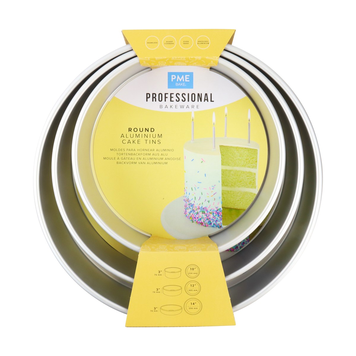 Bag perfekte kager med dette bageform sæt fra PME. Sættet indeholder tre runde bageforme med en højde på 7,5 cm og diametre på 25,4 cm, 30,5 cm og 35,6 cm, så du kan bage kager i forskellige størrelser.