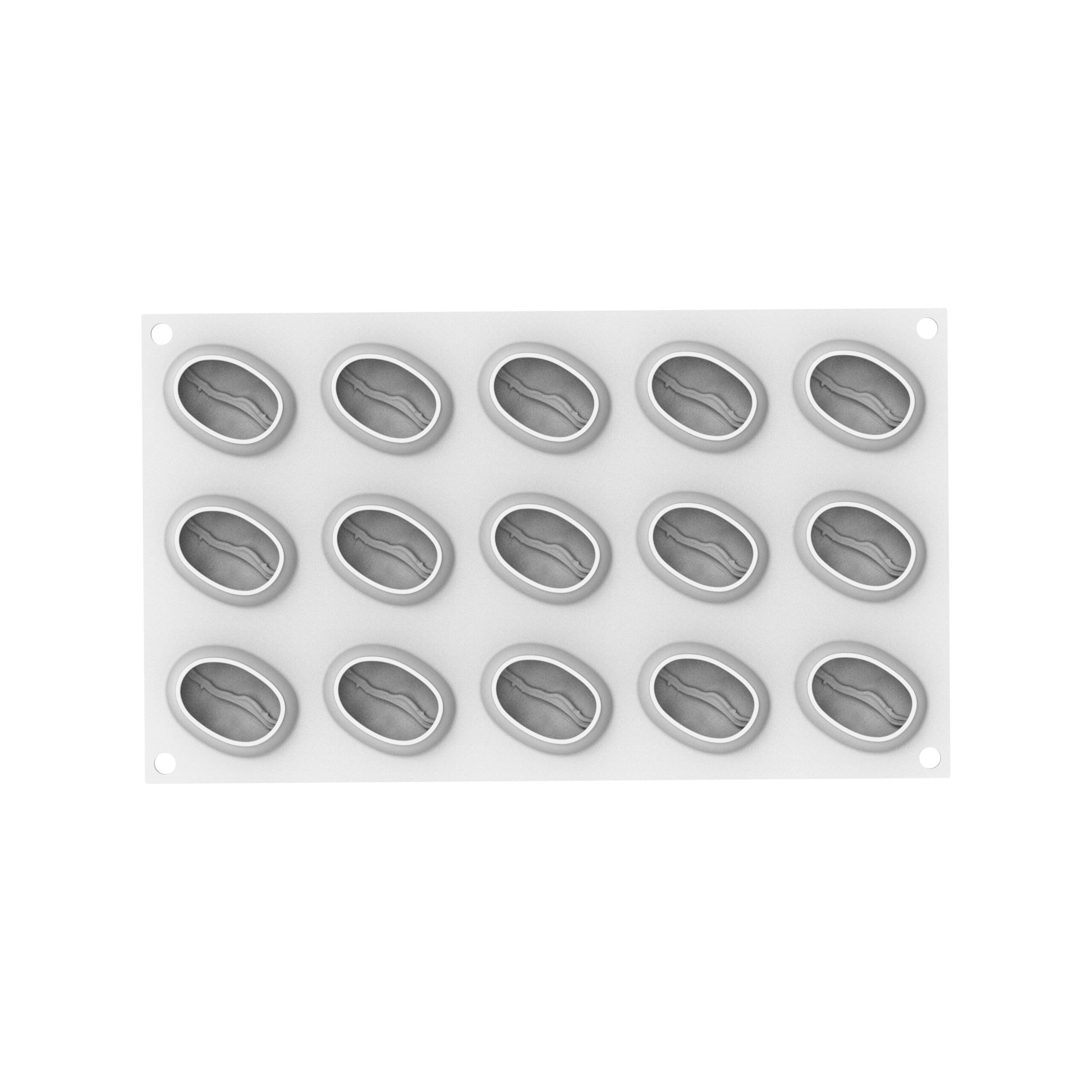 Skab elegante mini-desserter med et raffineret kaffetema med CAFFÈ 30 – en professionel silikoneform designet til at forme små, naturtro kaffebønner. Med 15 hulrum i størrelsen 50 × 38 mm og en højde på 26 mm er formen ideel til petit fours, smagfulde mundrette serveringer og delikate dessertanretninger.