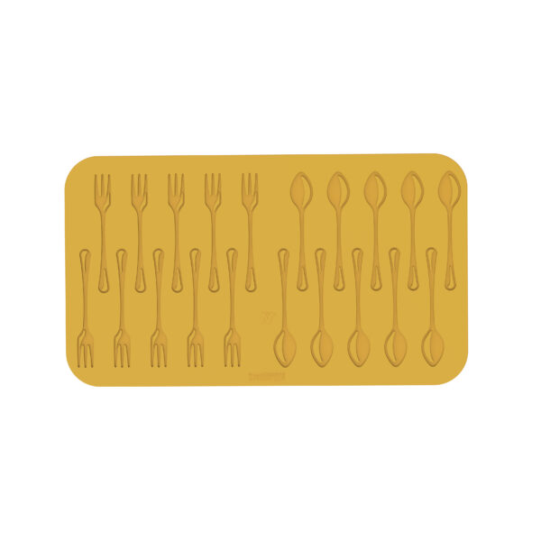 Tilføj et sofistikeret og unikt præg til dine kager og desserter med Coperto silikoneformen fra Silikomart. Denne form indeholder to klassiske former – skeer og gafler – som gør det muligt at skabe elegante og raffinerede dekorationer. Brug den med tuile, chokolade eller andre materialer for at opnå imponerende detaljer, der løfter enhver dessert.